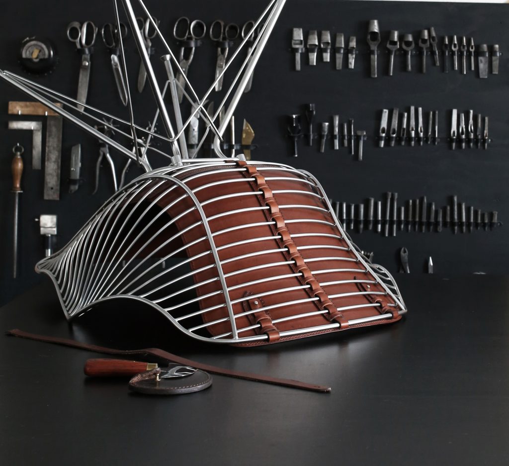Das Besondere an diesem Stuhl ist der Kontrast zwischen der formschönen Metall- und Stahlkonstruktion und dem hochwertigen Leder, das mit dem Know-how einer Sattlerei hergestellt wird.