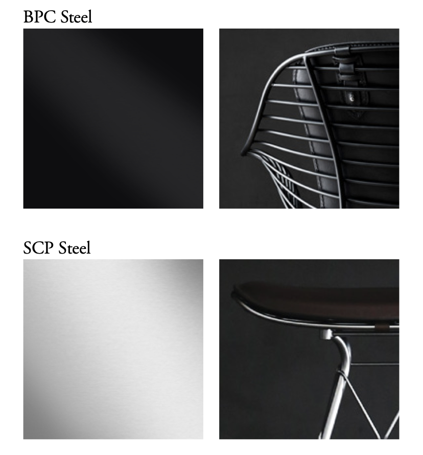 Die für die Wire Collection verwendete Satinverchromung ist ein sechswertiges Chrom (Cr6+) freies Verfahren. Es handelt sich um eine sehr dauerhafte Oberflächenbehandlung. Die Oberfläche hat ein mattes Aussehen wie Aluminium oder Edelstahl. Der Glanzgrad kann von Stück zu Stück leicht variieren.