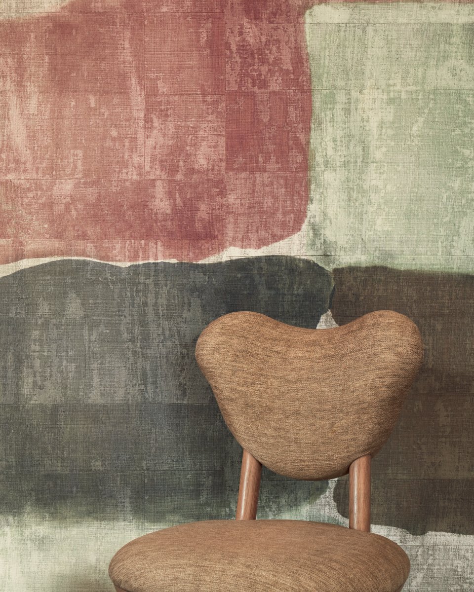 Geprägte Vinyltapete in der Optik eines Raffiagewebes.