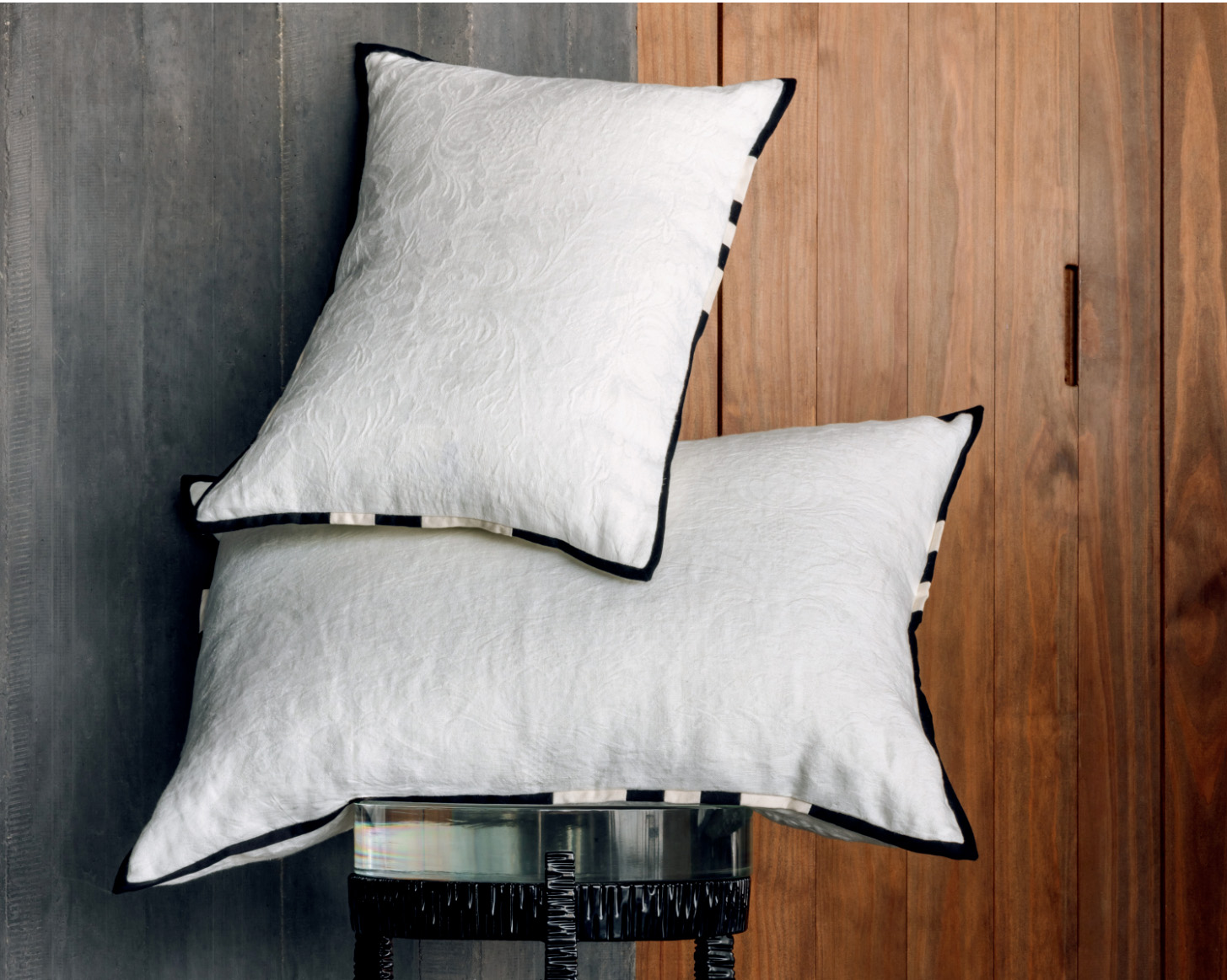 Housse de coussin en lin damassé