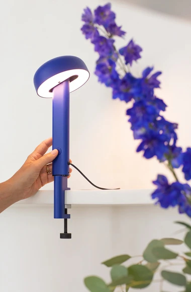 La lampe NOD à poser possède un variateur d’intensité à réglage progressif. Vous pouvez créer différentes ambiances de lumière au fil de la journée.