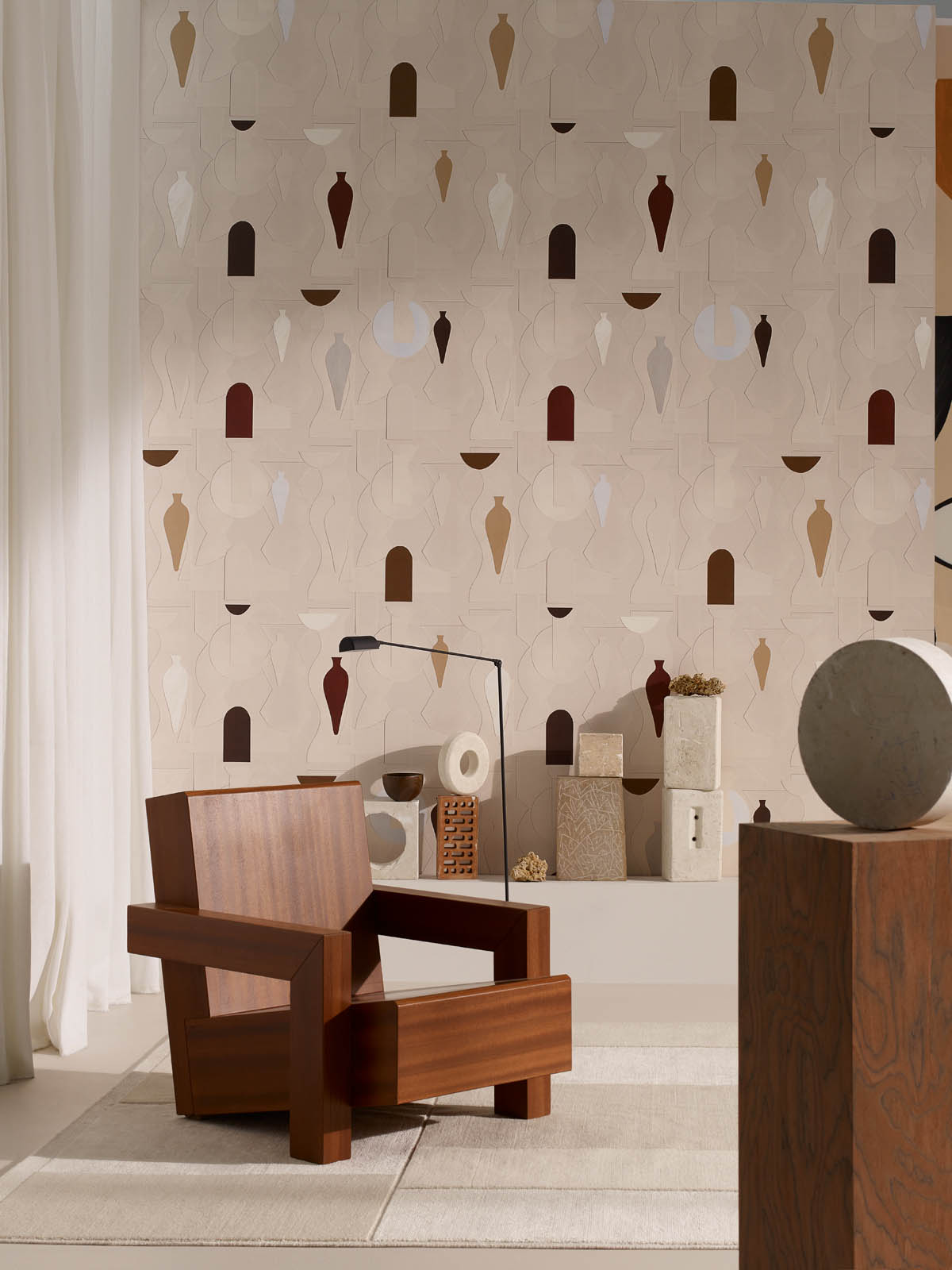 Description: Dessins géométriques sur intissé.