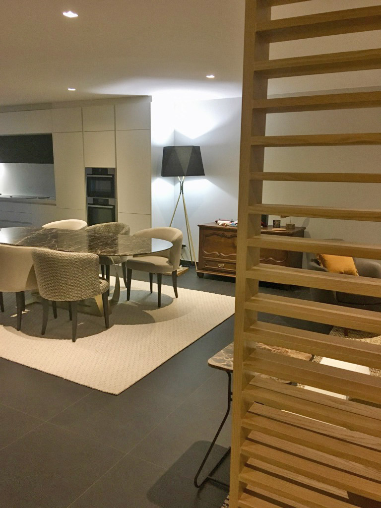 Des matériaux de qualité, un choix ajusté des tons, une esthétique et un agencement organisé pour la vie de tous les jours, voici les données du projet.